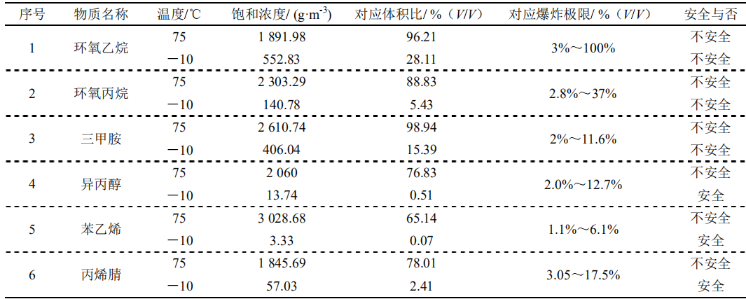 1不同溫度下有機(jī)物飽和濃度安全性分析